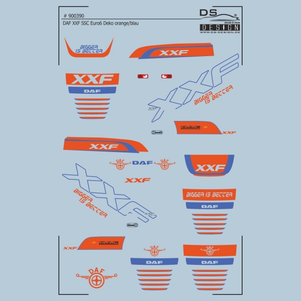 Hierbei handelt es sich um einen Decalsatz, der speziell für unser Kleinserienbausatz # 100043 entwickelt wurde. Dieses Decal wird in verschiedenen Farben angeboten und ist speziel auf das Fahrerhaus des DAF XXF SSC zugeschnitten.