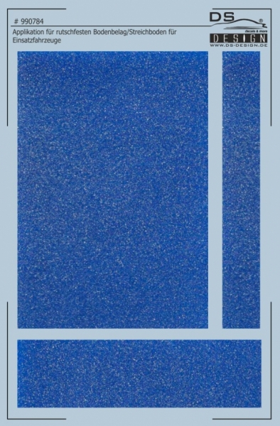 Das Decal # 950784 bildet einen rutschfesten Bodenbelag oder auch Streichboden bei den Modellen im Maßstab 1:87 ab. Dieser Bodenbelag findet in vielen RTW's, NEF's und auch ELW's Anwendung. Die entsprechenden Modelle können damit dann ausgestattet werden. Eine Großfläche und zwei kleine Flächen können somit bei den Modellen ELW, RTW und NEF angewendet werden.