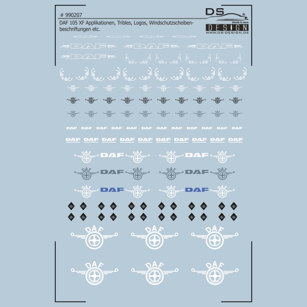 16-20 Tage, abhängig von der Lieferfähigkeit des HerstellersMit diesem Decal im Maßstab 1:87 erwerben Sie DAF Applikationen, die ausverschiedenen Logos, Tribles und versch. Beschriftungen etc. bestehen.