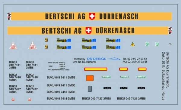 Bertschi AG Dürrenäsch, Deko für einen 30 ft. Bulkcontainer 3 versch. Versionen incl. Chassis-Deko