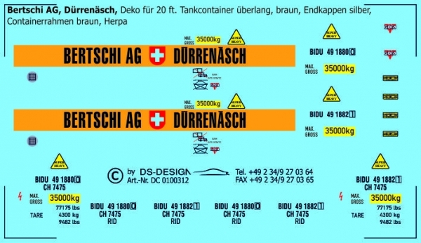Bertschi AG Dürrenäsch, 20 ft. Tankcontainer überlang braun