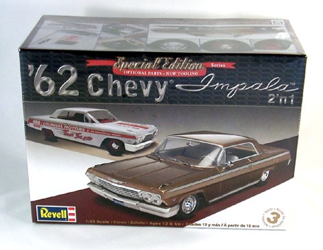 Für Sie aus den USA importiert, der 152-teilige Modellbausatz des Chevrolet '62 Chevy® Impala™ Hardtop von Revell. Ein anspruchsvoller Bausatz in der Kategorie Niveau 3 (Alter 12+).