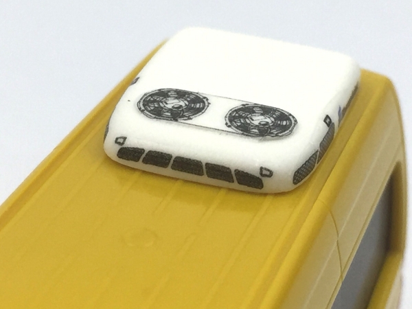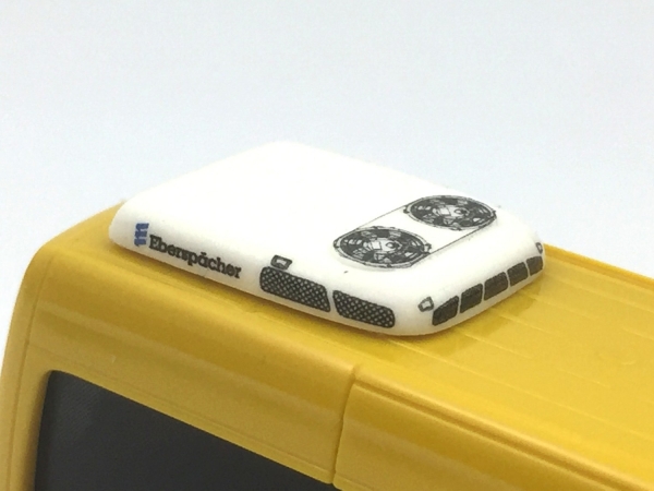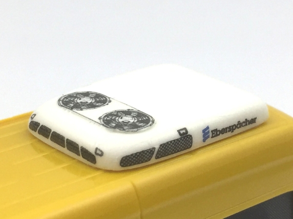 Das Bauteil wird in weiß oder grau gegossenem Resin angeboten und kann leicht mit Sekundenkleber oder auch mit 2-Komponenten-Kleber am Modell befestigt werden. Ein entsprechender Decalsatz zur vorbildkonformen Beschriftung wird mit den Dachklimaanlagen und Verarbeitungshinweisen geliefert.