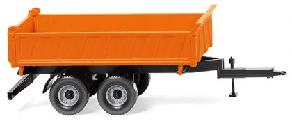 Bewusst wurde der Tandemhänger gewählt, weil er in der Hängerzugkombination authentischer die Fuhrparksituation kleinerer und mittlerer Tiefbauunternehmen widerspiegelt. Anhängerfahrgestell mit Achshalter und Stütze schwarz. Drehachse, Teleskopzylinder und Kugelhalter schwarz, Kippmulde, Seitenklappen und Heckklappe kommunalorange.