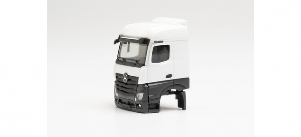 Um LKW-Hängerzüge mit dem Mercedes-Benz Actros BigSpace Fahrerhaus zu erstellen, ist dieses Fahrerhaus erforderlich, an dem der Luftansaugstutzen seitlich am Fahrerhaus montiert wird. Mit diesem Ersatzteilset können Sie problemlos, dank der Herpa-Stecktechnik, Modelle nach ihren Wünschen umbauen. In diesem Set befinden sich zwei große Mercedes-Benz-Fahrerhäuser der Baureihe Actros L, die besonders für Umbauten von Hängerzügen geeignet sind, da die seitlichen Windleitbleche fehlen. |
