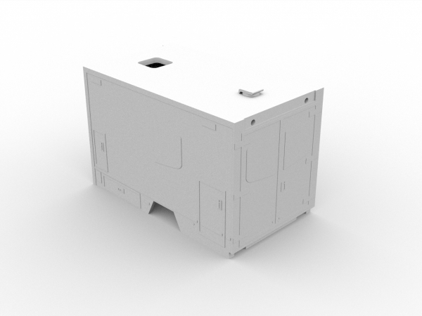 Der Koffer wurde so ausgeführt, dass er ohne Wechseln der Bodenplatte, sofort verwendet werden kann. Auch die Anbauteile, wie Alkhoven, Heckleiste, Rücklichter und Dachfenster können vom mitgelieferten MiniKit Modell # 013710 MB Sprinter 18 Fahrtec RTW übernommen werden. An den Seiten des Koffers sind die Fenster, Türen und Klappen, sowie Griffe erhaben dargestellt.
