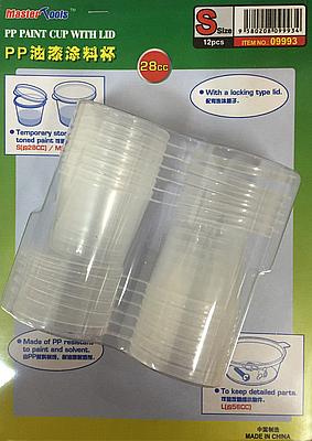Farbbecher mit Deckel, 12 Stück, Lösemittelbeständig. Zur Aufbewahrung von gemischter Farbe, aber auch kleinen Teilen. 28 ccm Volumen je Becher.