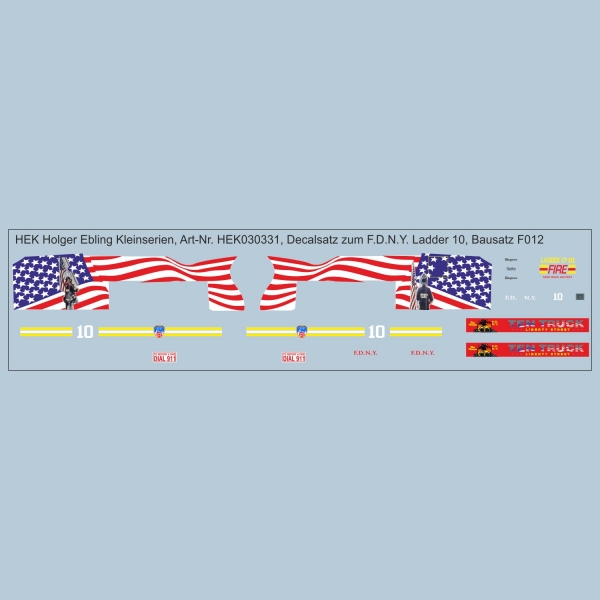 Bei diesem Decal handelt es sich um die Beschriftung der Ladder 10 -Ten Truck- der New Yorker Feuerwehr F.D.N.Y.
