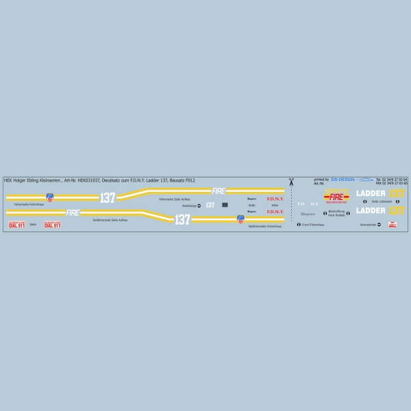 Der Decalsatz ist für den Bausatz F012 der HEK Holger Ebling Kleinserien vorgesehen.