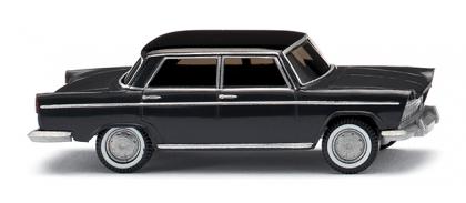 Der 1800er ordnete sich als mittelstarker Wagen in die europäische Spitzenklasse ein und setzte dank des prägnanten Turiner Stils Maßstäbe im Design. Nach einer Überarbeitung 1961 lief der 1800er bis 1968 vom Band. Im gleichen Jahr verschwand er auch aus dem WIKING-Programm. Karosserie mittelgrau, Fahrgestell und Felgen silber. Dachfläche schwarz kontrastiert. Karosserie mit seitlichen Türgriffen und Zierleisten gesilbert. Heckseitiges Türschloss sowie Fiat-Schriftzug und Typenzeichen „1800“ in silber. Handbemalte Frontscheinwerfer und Kühlergrillfläche. Rückleuchten rot mit silbernem Rückfahrlicht. Reifen mit Weißwandringen bedruckt.