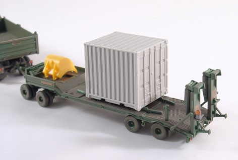 Sehr häufig ist dieser 10' Container auf Baustellen oder auch im Schwerlastbereich anzutreffen. Erstmals bieten wir diesen im Maßstab 1:87 an. Dieses Modell wird innerhalb unserer neuen TransKit-Serie mit einer in der selben Farbe produzierten Bodenplatte ausgeliefert. Das Modell wurde im Kunststoffguss produziert und kann ebenfalls bei Belieben noch lackiert werden.