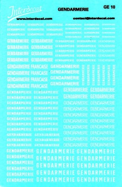 Ein im Siebdruckverfahren hergestelltes Decal mit weißen Schriftzügen der französischen Polizei in verschiedenen Größen. Das Decal GE10 Gendarmerie eignet sich hervorragend zum Bestücken von Großserienmodellen.