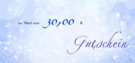 Sie erwerben hier einen Gutschein in Höhe von EURO 30,00, der einmalig bei einer Online-Bestellung eingelöst werden kann. Die Gültigkeit beträgt drei Jahre nach Ausstellungsdatum.