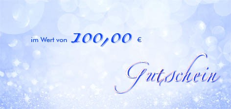 Sie erwerben hier einen Gutschein in Höhe von EURO 100,00, der einmalig bei einer Online-Bestellung eingelöst werden kann. Die Gültigkeit beträgt drei Jahre nach Ausstellungsdatum.
