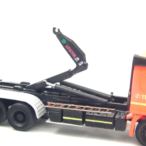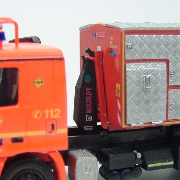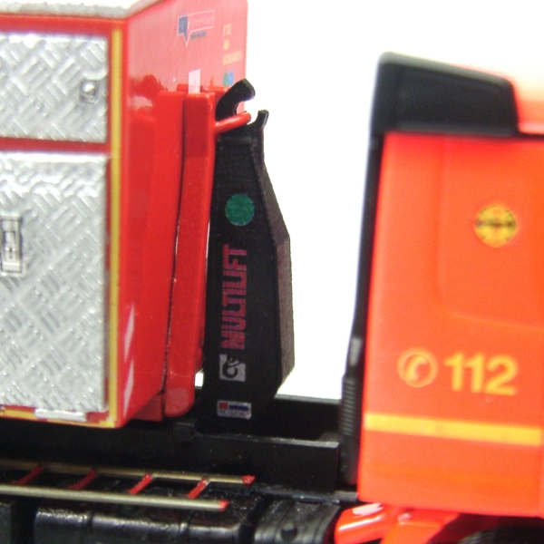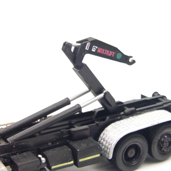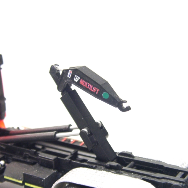 Es handelt sich hierbei um eine im 3D-Druck Verfahren hergestellte HIAB Hakenaufnahme mit einer hohen Oberflächengüte nach Originalvorbild, die mit der Hakenaufnahme der Wechselladereinrichtung von Herpa kompatibel ist. Die einzelnen Komponenten können so ausgetauscht werden.