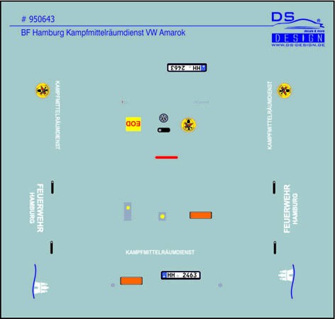 Das Decal # 950643 vom Kampfmittelräumdienst der Feuerwehr Hamburg basiert auf einem VW Amarok, lackiert in Tornadorot/VW.