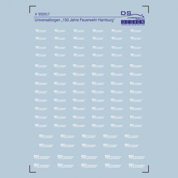 Dieses Universaldecal der Feuerwehr Hamburg beinhaltet das neue Zusatzlogo "150 Jahre Feuerwehr Hamburg" in verschiedenen Größen für alle Modelle zum Nachrüsten.