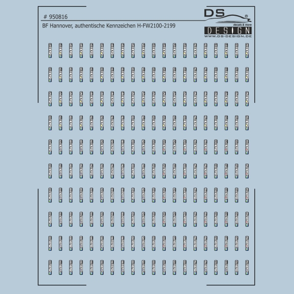Bei dem Decal # 950816 handelt es sich um authentische Kennzeichen der Berufsfeuerwehr Hannover. Wir bieten dieses Decal zur vorbildkonformen Gestaltung Ihrer Modelle an.