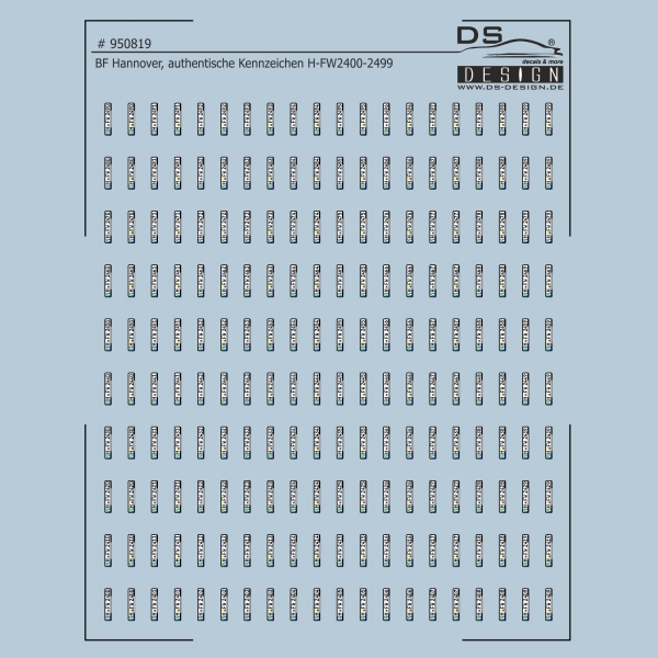 Bei dem Decal # 950819 handelt es sich um authentische Kennzeichen der Berufsfeuerwehr Hannover. Wir bieten dieses Decal zur vorbildkonformen Gestaltung Ihrer Modelle an.