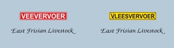 Mit diesen Hinweisschildern werden in den Niederlanden LkW's für Tiertransporte gekennzeichnet.