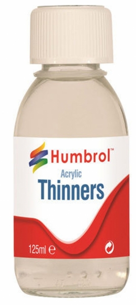Verdünnt die Lackviskosität bei allen Acryl-Farben von Humbrol und reduziert ein wenig die Trocknungszeit. Kann auch zur Reinigung von Pinseln oder der Airbrushpistole verwendet werden.