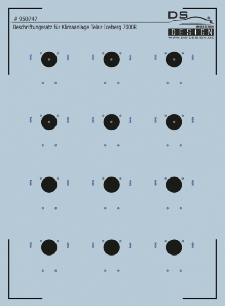 Die Klimaanlage Telair Iceberg 7000R wird von uns im Maßstab 1:87 als Resinbauteil unter der Artikel-Nummer 550108angeboten. Sie erwerben hier als Decal den entsprechenden Beschriftungssatz für die vorbildkonforme Beschriftung.