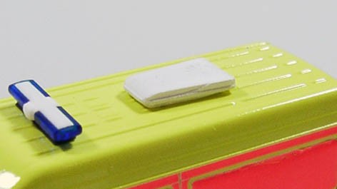 Das Bauteil wird ohne störenden Gussast geliefert und weist im hinteren Bereich ein angedeutetes Lüfterrad auf. Ein entsprechender Beschriftungssatz als Decal ist unter der Artikel-Nr. 950747 zu finden. So kann die Dachklimaanlage Telair Iceberg 7000R vorbildkonform beschriftet werden.