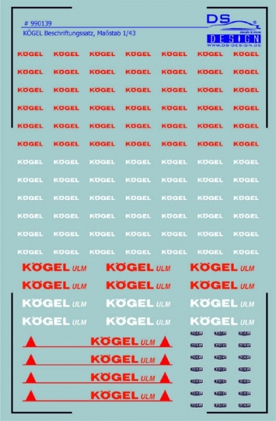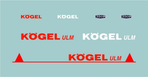 Sie erwerben hier einen auf einer ganzflächigen Decalfolie gedruckten Beschriftungssatz des Aufbautenherstellers Kögel mit Schriftzügen und Heckblenden.