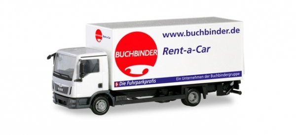 Auch Fahrzeuge der 7,5-Tonnen-Klasse werden bei Buchbinder Autoverleih für die bundesweite Vermietung vorgehalten. Das Herpa-Modell ist vorbildgerecht mit einer Ladebordwand ausgestattet.