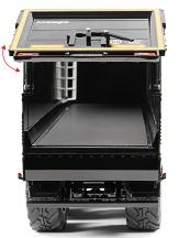 Es ist die neue Transportgeneration in der Landwirtschaft und damit eine Alternative zu den bekannten Abschiebewagen, die bislang für Schüttgut vorherrschende Bedeutung hatten: Der Sattelauflieger Bandit SB II 30/1070 von Krampe wird im Alltagsbetrieb dank der bodenseitigen Rollbandtechnik nicht angehoben und kann somit auch in niedrigen Hallen entleert werden – eine wirkungsvolle Innovation. WIKING miniaturisiert den Horizontalentlader mit maßstäblichen Funktionen und lässt ihn im Krampe-Rot in die Serie fahren. Das System überzeugt, denn die hohe Standsicherheit beim Entladevorgang schafft Berechenbarkeit und öffnet ein breiteres Einsatzspektrum. Neben Gütern wie Getreide, Silage, Dünger, Hackschnitzel, Pellets oder Schreddergut lassen sich auch anhaftende Güter wie Kompost und Klärschlamm nahezu rückstandsfrei entladen. Bei formfesten Gütern wie Kompost erzielt das Rollbandsystem des Bandit SB II 30/1070 beim Entladen einen ungewöhnlich hohen Schüttkegel und schiebt das Zugfahrzeug nebst Anhänger beim Entladevorgang regelrecht nach vorne. Das ist ideal, wenn die Hinterachse des Sattelaufliegers entlastet wird, somit der Grip fehlt und das Gespann wieder von der Entladestelle losfahren muss. Die zügige Entladezeit von 80 Sekunden schlägt bei kurzen Zyklen zusätzlich positiv zu Buche. Die einfache Reinigung ist gegenüber dem Schubbodensystem ein weiterer großer Pluspunkt. Ideal ist auch der rutschfeste Boden, der sich in Verbindung mit der Beladeoption auch zum Transport von Pallettenware, Strohballen oder Bigpacks eignet. Das Krampe-Vorbild verfügt über ein zulässiges Gesamtgewicht von 35 Tonnen, die Nutzlast liegt bei 27 Tonnen.