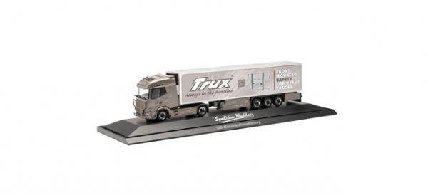 Der erste Showtruck auf Basis des neuen DAF XG hält nun Einzug im Herpa-Sortiment. Im Fuhrpark von Sven Raddatz fährt seit wenigen Monaten dieser bildschöne DAF XG mit TRUX-Werbeauflieger. Die komplett lackierte Zugmaschine erhält den bekannten Trux-Rammschutz, der in der Grundfarbe der Zugmaschine beilackiert wurde. Das PC-Modelle erscheint in einmaliger Auflage.