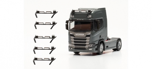 Formneuheit! Neu im Herpa-Zubehörprogramm ist dieser komplett neu gestaltete Lampenbügel, der zusätzlich zu den zwei LED-Leuchten mit jeweils zwei transparenten Rundumleuchten ausgestattet. Diese Lampenbügel erscheinen in schwarzer sowie verchromter Ausführung. In jedem Set sind jeweils 6 Stück enthalten.