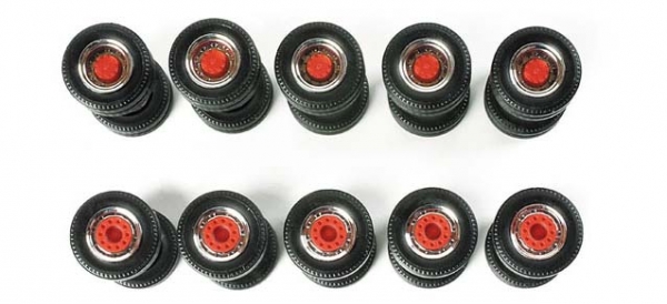Lenk- und Zwillingsreifen Zugmaschinen (chrom/rot, 5 Sätze)