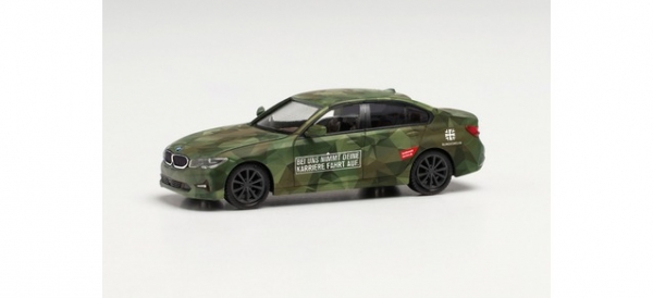 In dem Bereich der Personalwerbung setzt die Bundeswehr diese Fahrzeuge der BMW 3er-Reihe ein. Die in einer besonderen Form des Flecktarndesign gehaltenen BMW werben für die Bundeswehr mit entsprechender Beschriftung. Herpa setzt diese außergewöhnlichen Fahrzeuge mit jeweils mehr als 30 Druckvorgängen in einmaliger Auflage als Miniaturmodell um. | ||