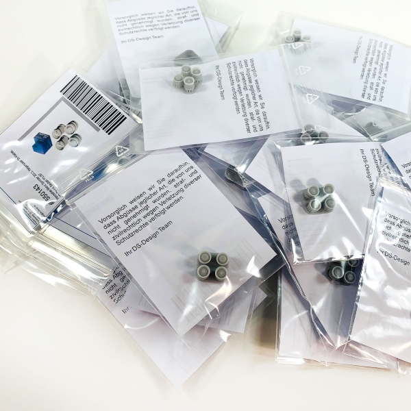 Die Bauteile können mit handelsüblichen Farben lackiert und mit Sekundenklebern geklebt werden. Vor der Lackierung und dem Zusammenbau müssen allerdings das Stützmaterial entfernt und das Bauteil etwas mit einem feinen Schleifpapier angeraut werden. Sehr gut eignet sich hier ein Schleifvlies. Für das Entfernen des Stützmaterials empfehlen wir einen feinen Seitenschneider und eine kleine Feile.