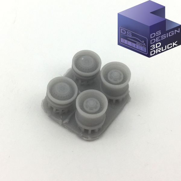 Diese Felgen wurden im CAD Verfahren auf dem Computer anhand einer Vorlage erstellt und auf unserem hochwertigen 3D Drucker gedruckt. Das gedruckte Bauteil zeichnet sich durch seine extrem glatte Oberfläche und Detailgenauigkeit aus.