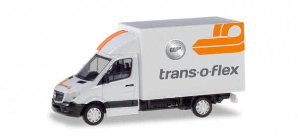Trans-o-flex Express GmbH mit Sitz in Weinheim in Baden-Württemberg setzt auch im Verteilerverkehr Mercedes-Benz Sprinter mit Kofferaufbau ein. Das Herpa-Modell wird mit der authentischen Bedruckung in einmaliger Auflage produziert.
