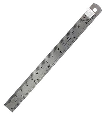 Aus Edelstahl, 150 mm lang, zum Messen oder als Schneidelineal verwenden.