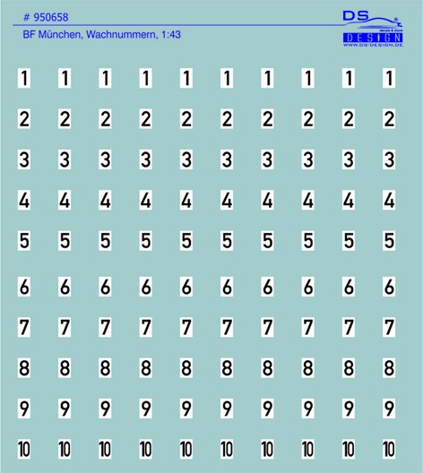 Das Decal # 950658 bildet die typischen Wachnummern der Feuerwehr München ab. Es ist ideal zur Ergänzung von Großserienmodellen im Maßstab 1/43 geeignet.