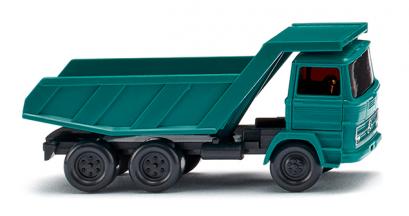 Mit der kubischen Generation hatten die Mercedes-Benz-Frontlenker seit den Sechzigerjahren erstmals die veritable Chance, im Baustellengeschäft der großen Muldenkipper ein Wörtchen mitzureden. Bis dahin waren die Baufirmen und Steinbrüche auf zumeist imposante Hauber eingeschworen. Fahrerhaus mit Mulde wasserblau, Fahrgestell anthrazitgrau.