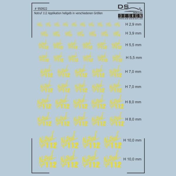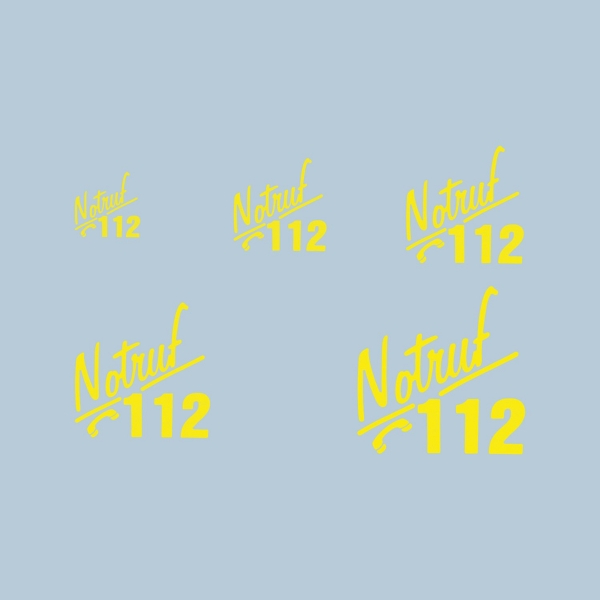 Notruf 112 hellgelb in verschiedenen Größen, 1 Stück Decal