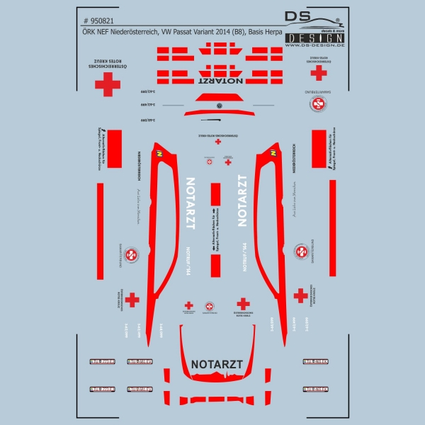 Es handelt sich hierbei um die einheitliche Beschriftung des in Niederösterreich eingesetzen Notarzteinsatzfahrzeuges des Österreichischen Roten Kreuzes. Mit diesem Beschriftungssatz kann ebenfalls das Fahrzeug in Kombination mit dem ASBÖ gestaltet werden.