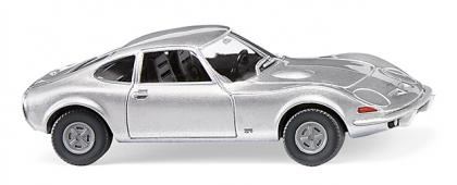 Wer den silber-metallicfarbenen Opel GT vor Augen hat, vergibt auf Anhieb das Prädikat „wertvoll“. Im Glanz der changierenden Karosserie hat das Sportcoupé das gewisse Etwas. So erscheint das Sportcoupé in neuer Farbe und zählt bei WIKING einmal mehr zu den favorisierten Youngtimern im Klassikersortiment. Zwischen 1968 und 1973 sorgte sein Vorbild für Furore – nicht nur wegen seiner serienungewohnten „Schlafaugen“. 103.373 liefen in Bochum vom Band – viele davon gingen in die USA. Der „Grand Tourisme“, kurz GT, war die schlichte Herausforderung an den Wettbewerb, der nicht lange auf sich warten ließ. Karosserie reflexsilber lackiert, Fahrgestell schwarz. Inneneinrichtung und Lenkrad schwarz. Heckscheinwerfer rottransparent eingesetzt. Stoßstangen silbern vorn und hinten eingesetzt, Felgen silbern. Front- und heckseitig Opel-Logo, seitlicher Zierrat mit „GT“-Schriftzug silbern bedruckt, Blinker orange.