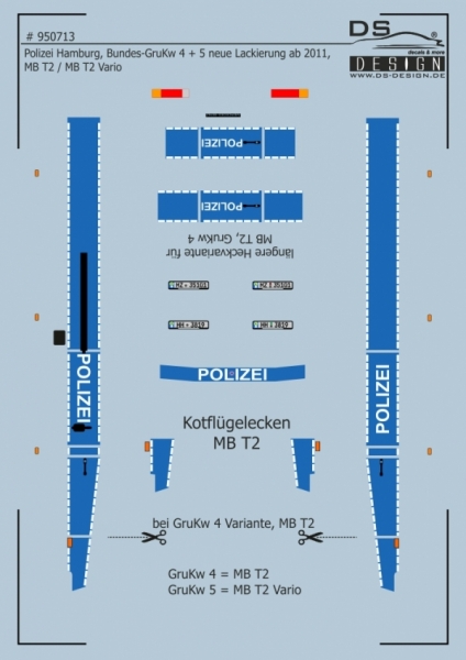 Bei diesem Decal handelt es sich um die Umsetzung der neuen Lackierung auf silber bzw. weiß mit blauer Polizeibeklebung. Hier wurden bereits im Dienst befindliche Gruppenkraftwagen technisch überarbeitet und erhielten eine neue Lackierung einschl. der Beklebung.