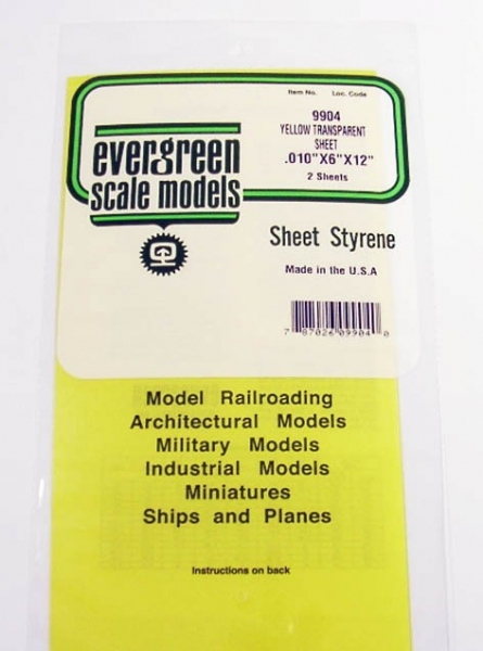 Gelbe transparente Polystyrolplatte, gut geeignet für den Eisenbahnmodellbau, Plastik- oder Architekturmodellbau.