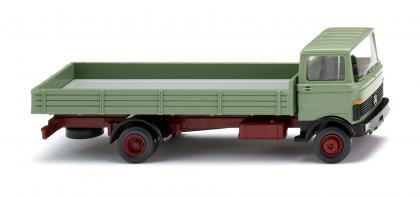 Er war aus dem Straßenbild der Sechziger- und Siebzigerjahre nicht wegzudenken. Mercedes-Benz hatte mit dem LP 809 eine neue Sachlichkeit im Karosseriebau auf den Weg geebnet – das Pullman-Fahrerhaus erlebte die Evolution hin zur kubischen Ära. WIKING revitalisiert die historischen Formen des LP 809, der sich diesmal mit Pritsche und im zeitgenössischen Erscheinungsbild nahtlos in die Chronologie von zeitgenössischen Mercedes-Benz-Lkw einbinden lässt. Fahrerhaus hellgrün, Inneneinrichtung mausgrau. Fahrgestell und Kardanteil oxidrot. Fahrerhausunterteil mit Kühlergrill und hinteren Kotflügeln schwarz. Pritsche hellgrün, Felgen oxidrot gehalten. Blinker vorn gelborange, Heckleuchten rot bedruckt. Mercedes-Benz-Stern auf dem Kühlergrill gesilbert.