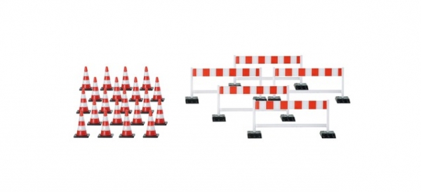 Baustelle? Klar braucht man dazu auch Absperrungen. Das Set enthält 20 Pylonen und 5 Absperrschranken in Weiß und Rot, um die "Kunststoffausführung" zu "simulieren"..