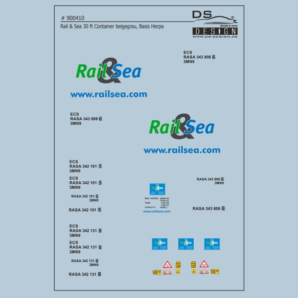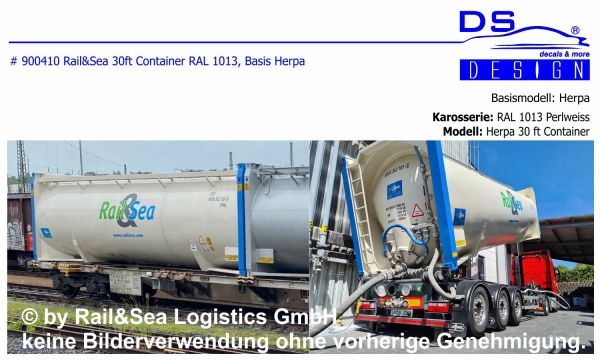 Sie erhalten hier ein Decal im Maßstab 1/87 mit der Beschriftung eines 30 ft. Containers der Rail&Sea Logistics. Der Container ist in RAL 1013 Perlweiß lackiert. Das Decal wird mit Verarbeitungshinweisen und Fotos vom Originalcontainer geliefert.