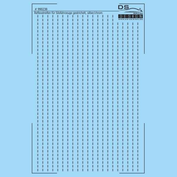 Dieses Decal # 990238 Reflexstreifen für Silofahrzeuge gestrichelt wurde speziell für Siloauflieger entwickelt. Es handelt sich hierbei um die typischen seitlichen Reflexstreifen, diesmal gestrichelt, die auch universell für andere Aufliegertypen verwendet werden könn.