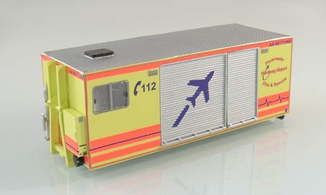 Mit diesem Bausatz erwerben Sie ein Modell des Abrollbehälters AB Rett (Rettung) der Flughafenfeuerwehr Hamburg Airport der Fa. GSF. Die Bauteile sind in weiss oder beige produziert, somit können Sie gleich beginnen, das Modell in dem endgültigen Farbton zu lackieren.